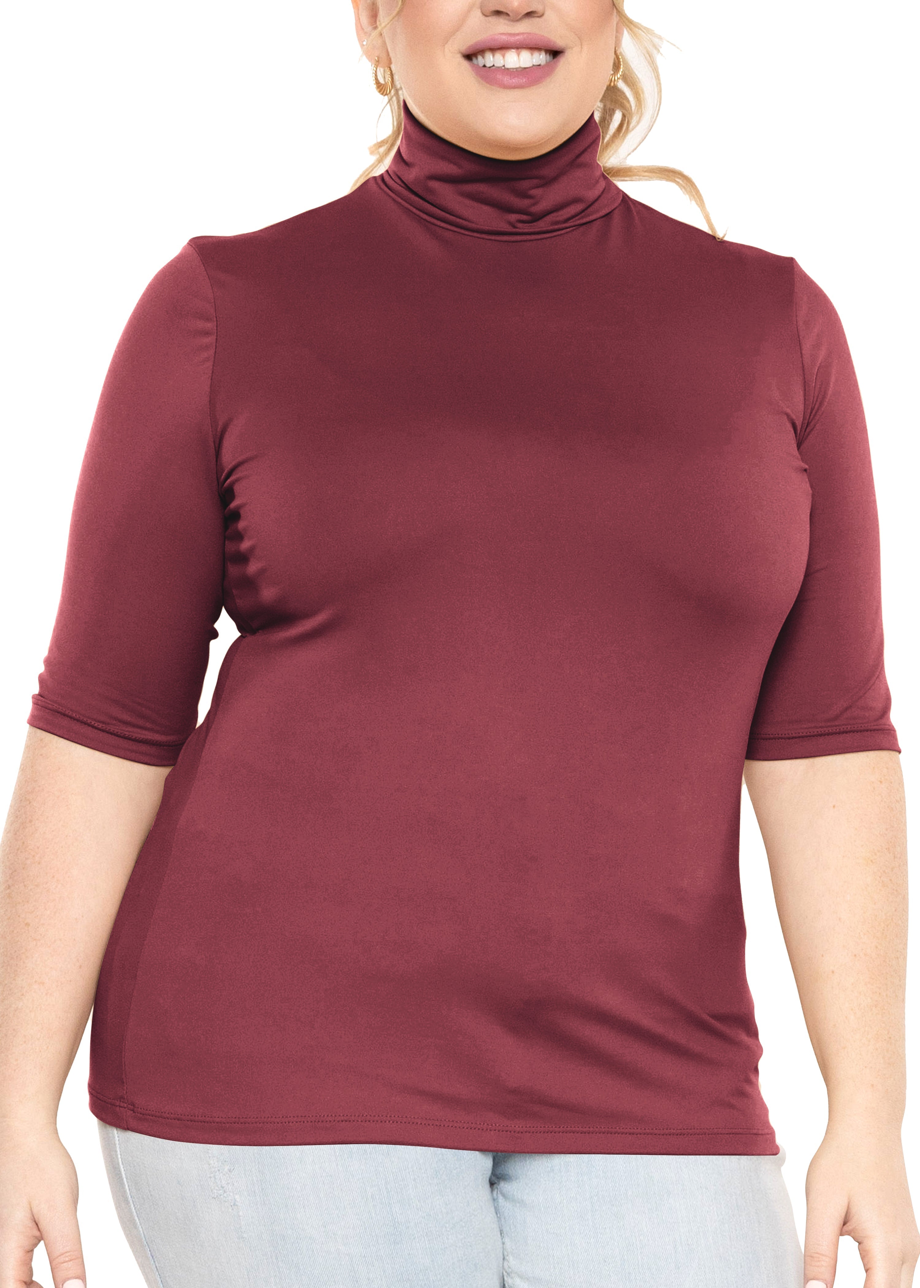 Women's Plus Size Warm Short Sleeve Turtleneck Top | Ultra Soft | X-Large to 5X