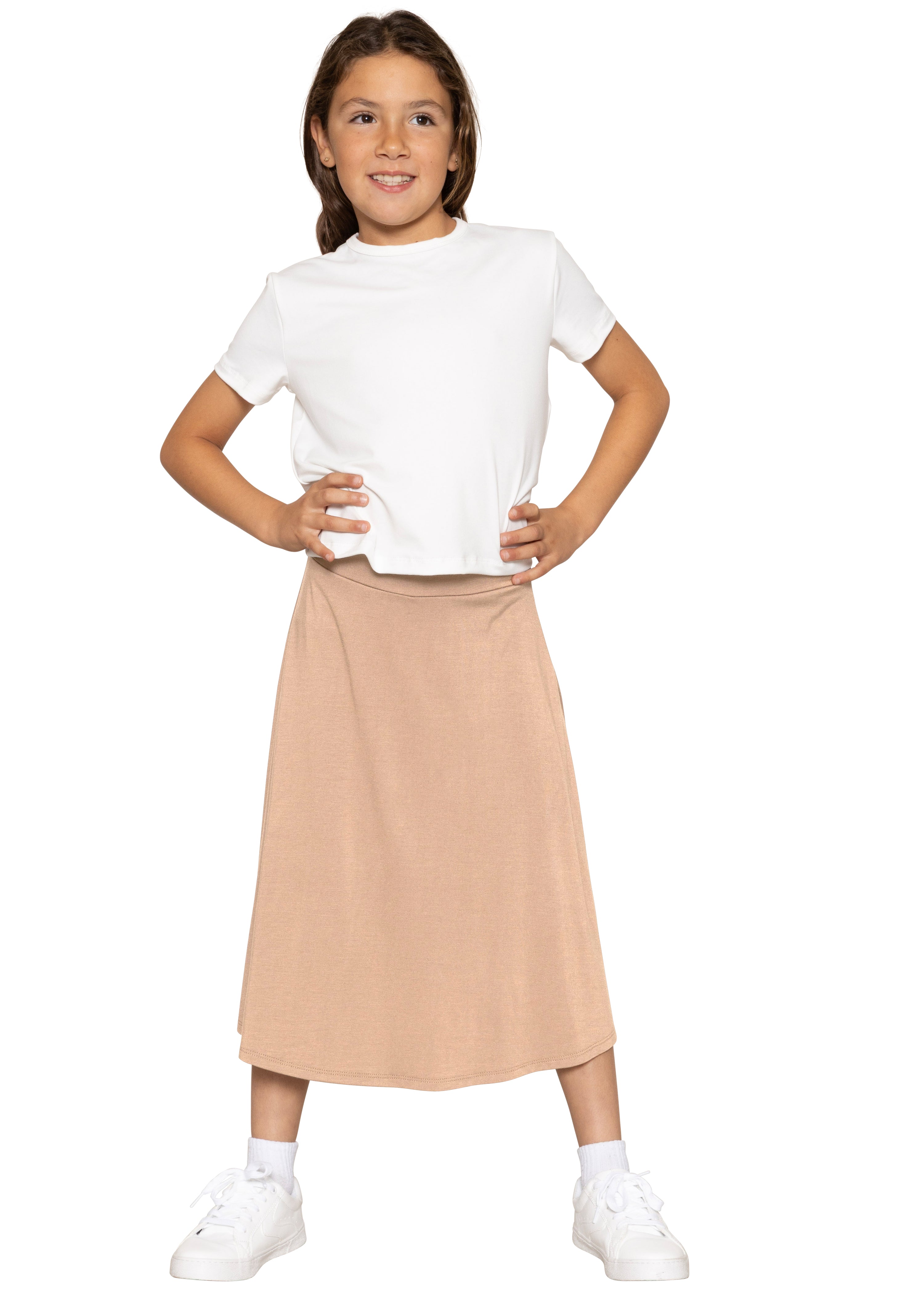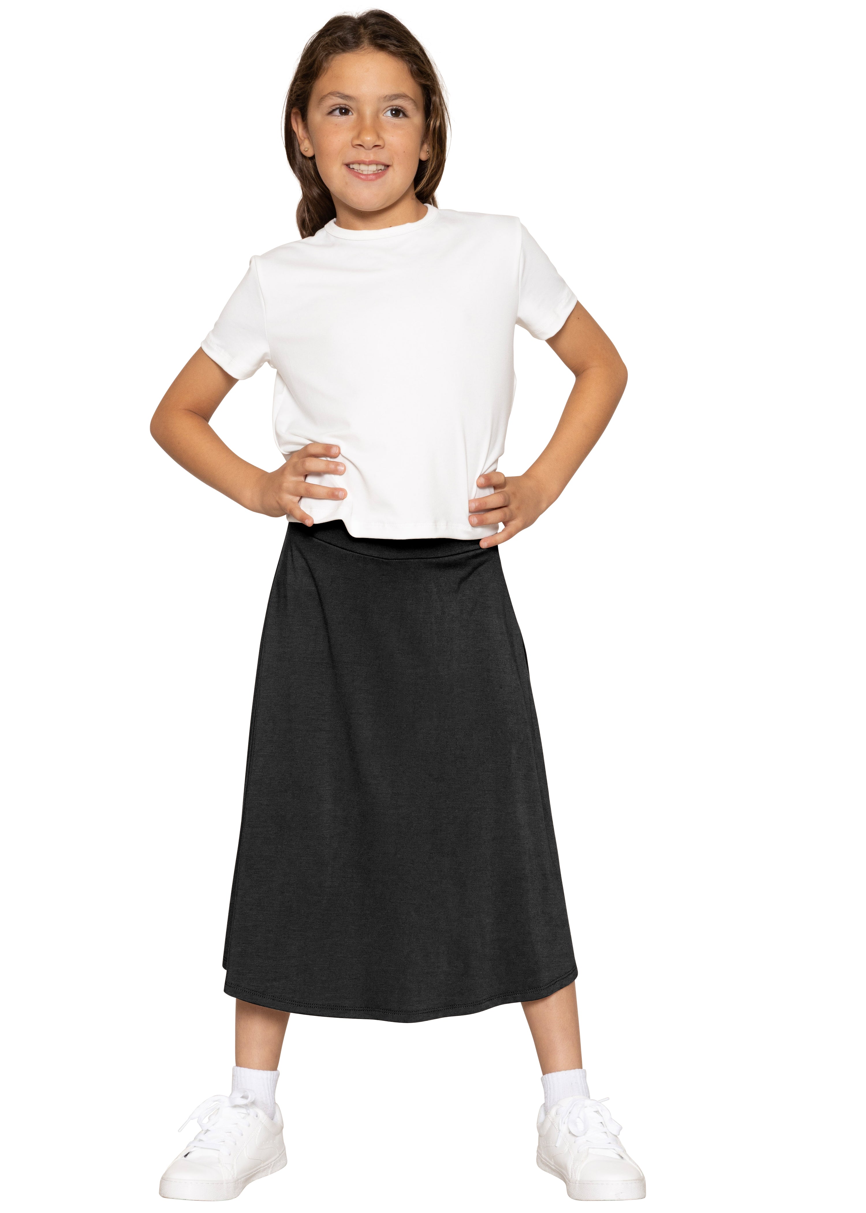 Girls A-Line Midi Skirt with Built-in Shorts | Youth Size 4 to 16