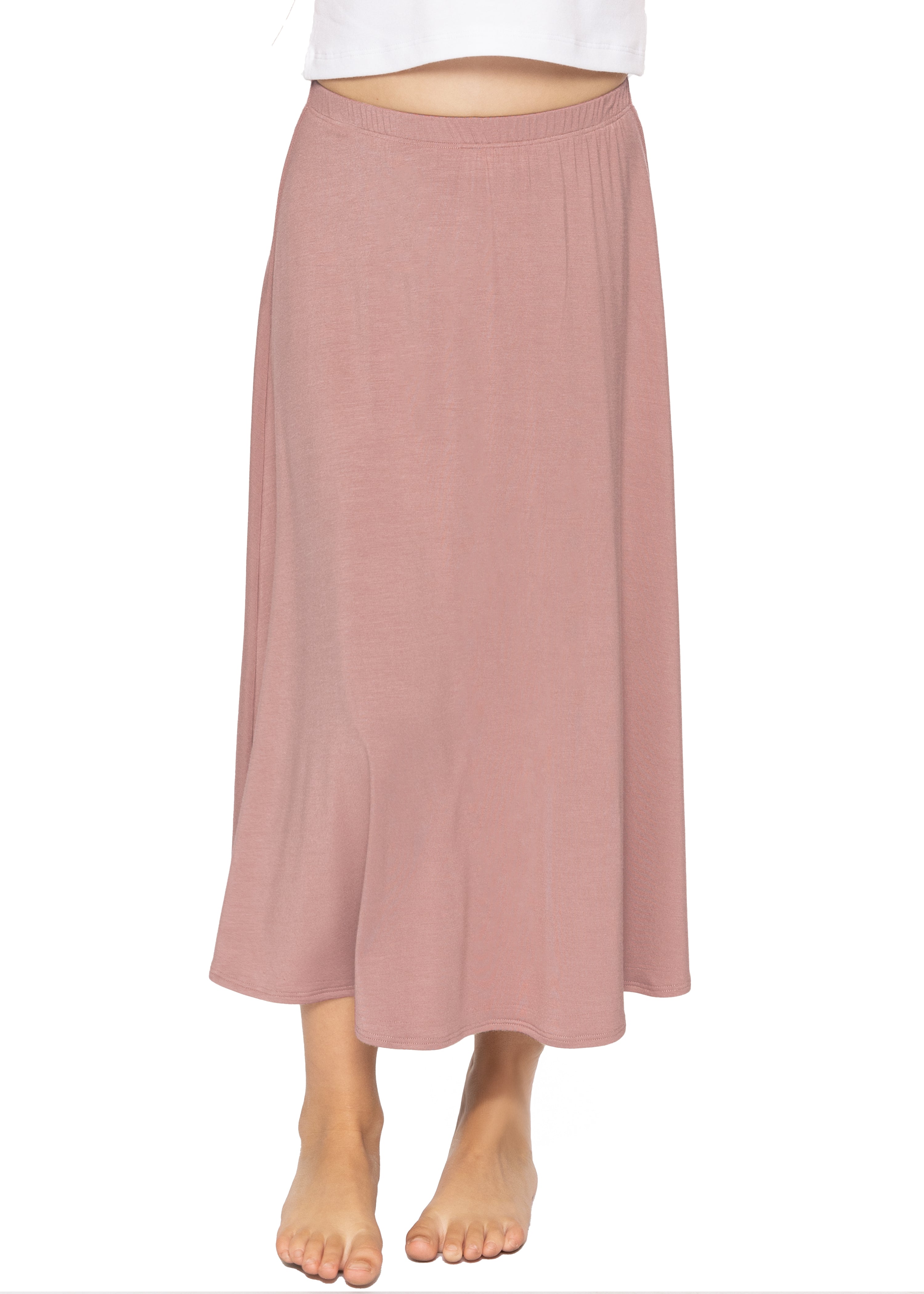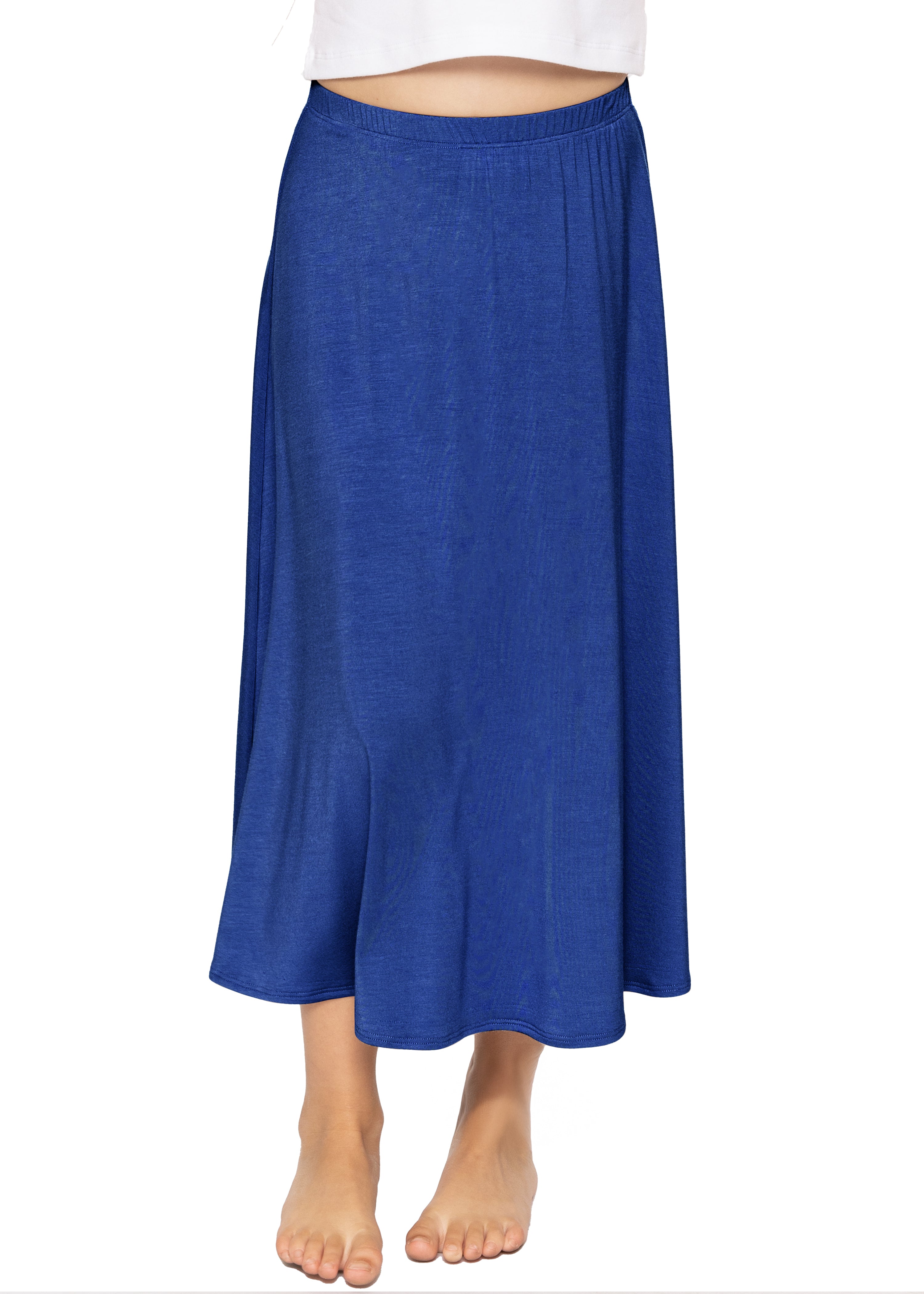 Wrap your little one in all-day comfort with our Youth Girls Knee Length Flowy A-Line Skirt! Made from our super soft and stretchy 95% Rayon / 5% Spandex blend, this skirt is breathable, non-see-through, and light as air—perfect for every season and every activity.