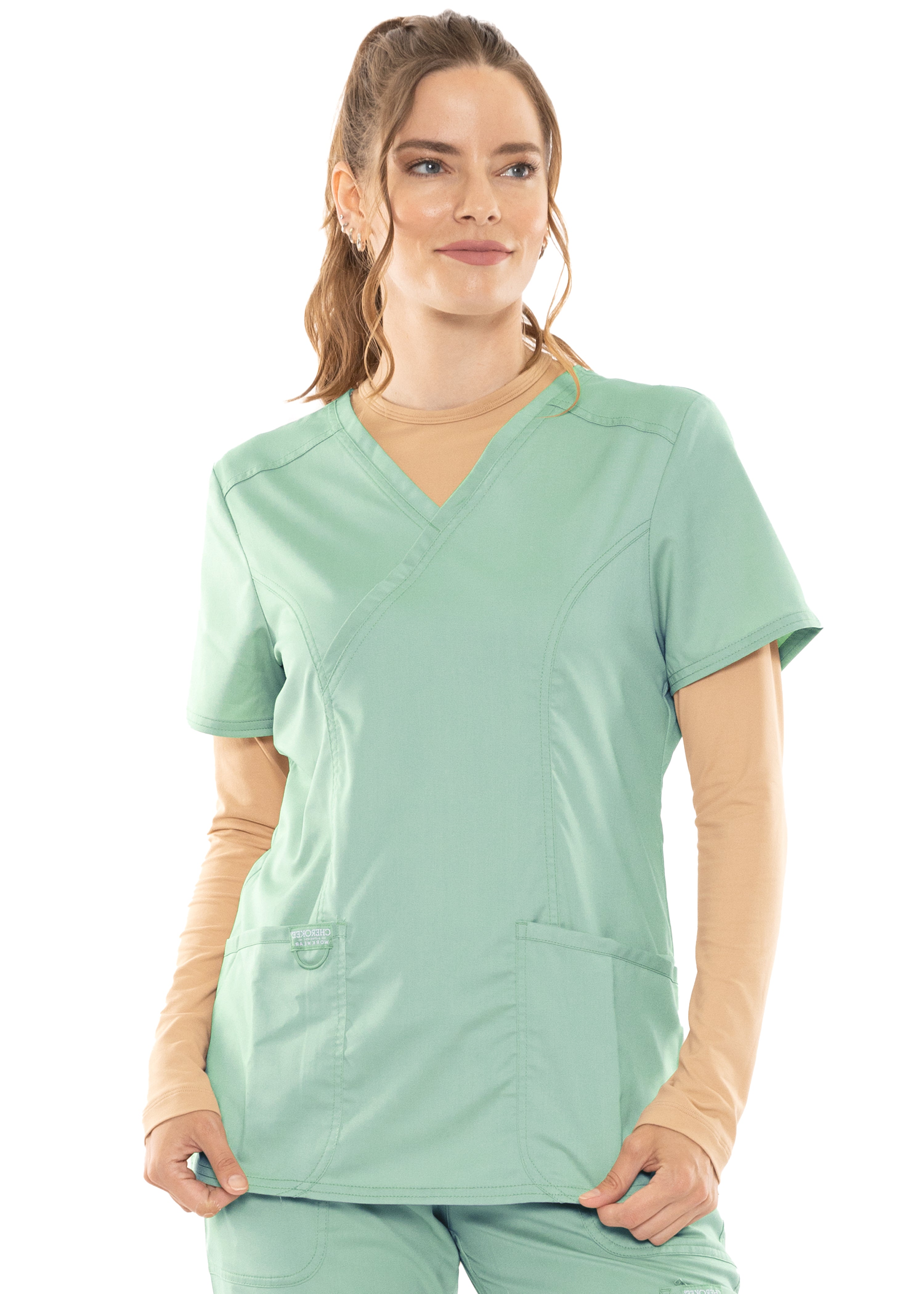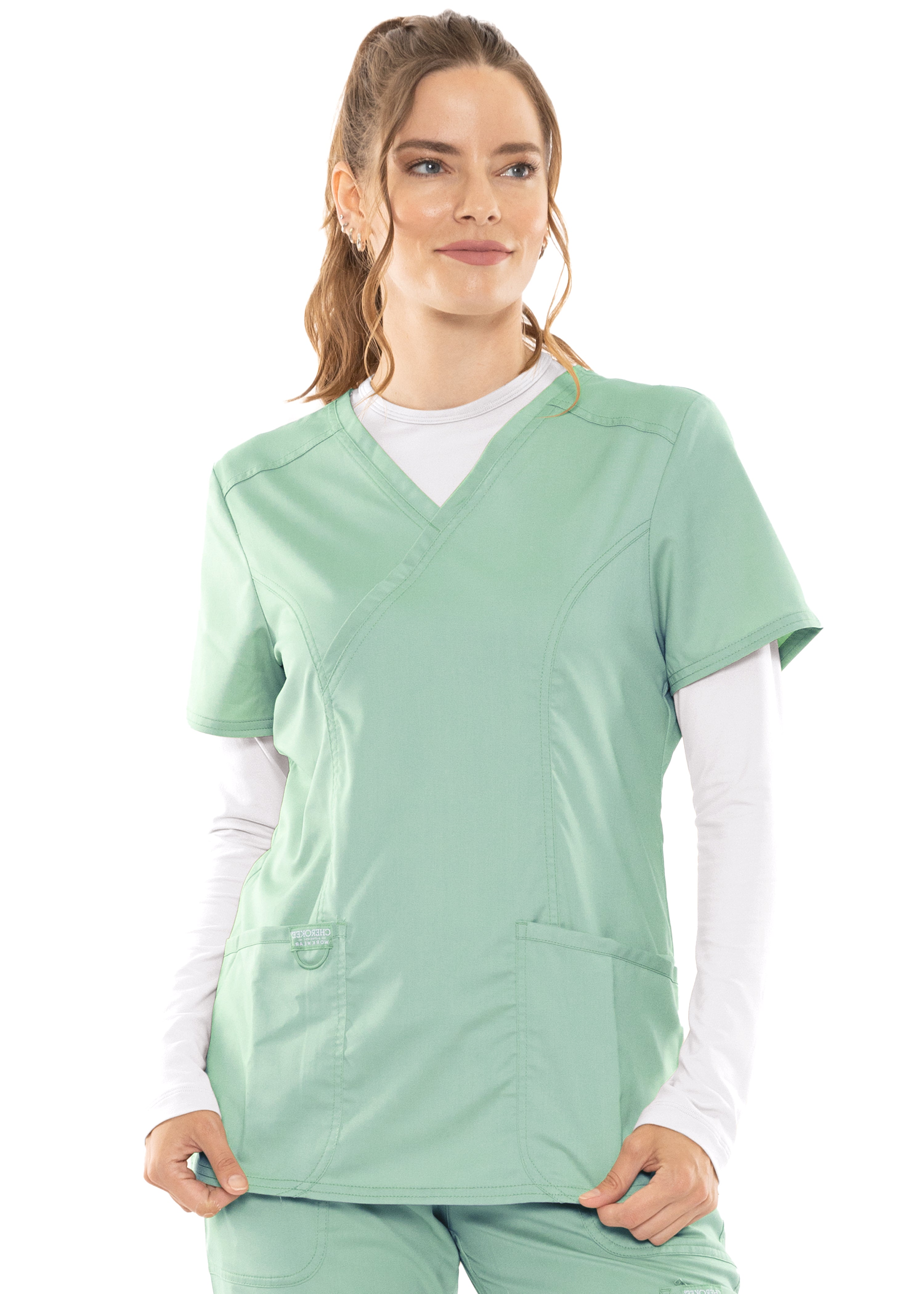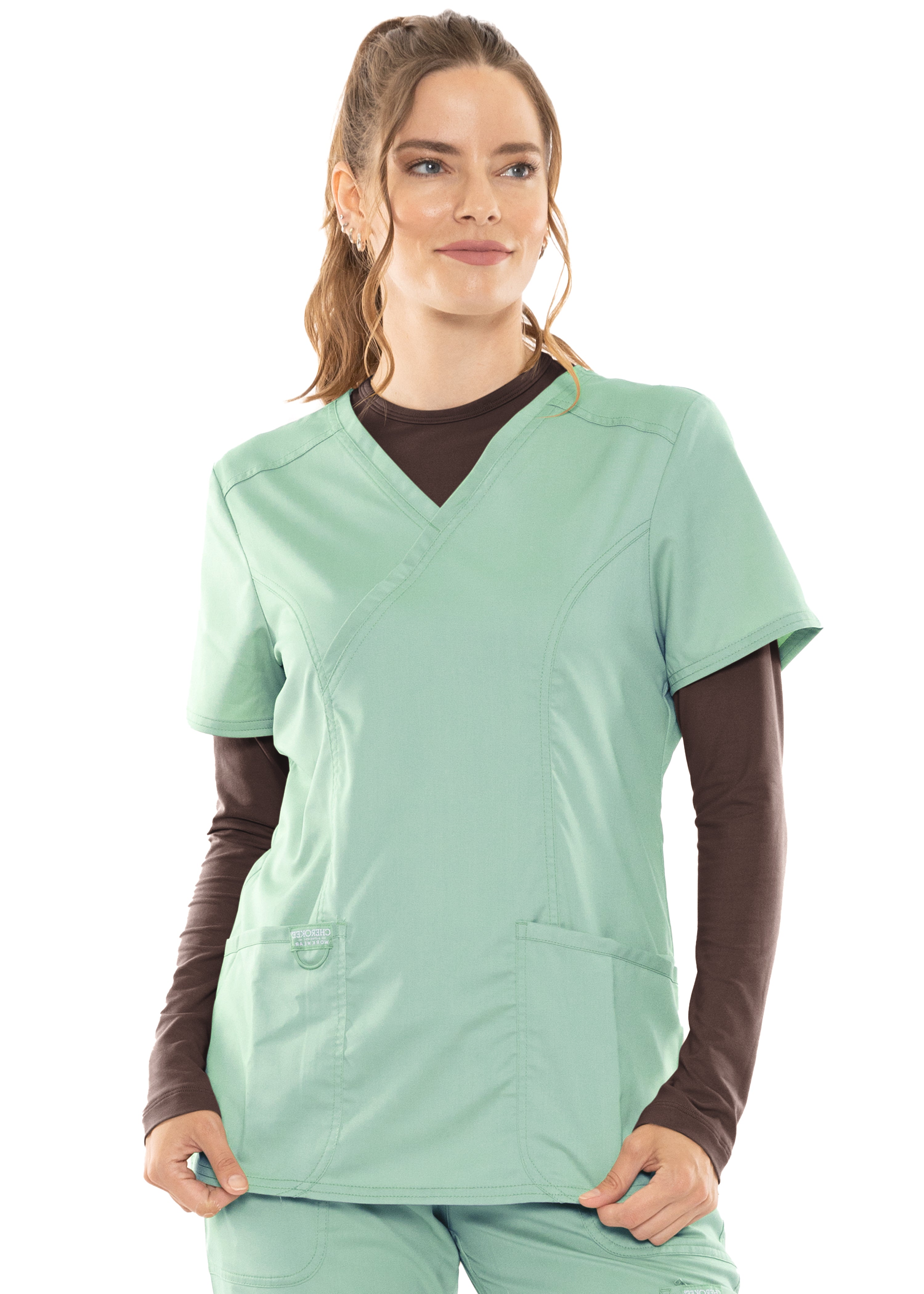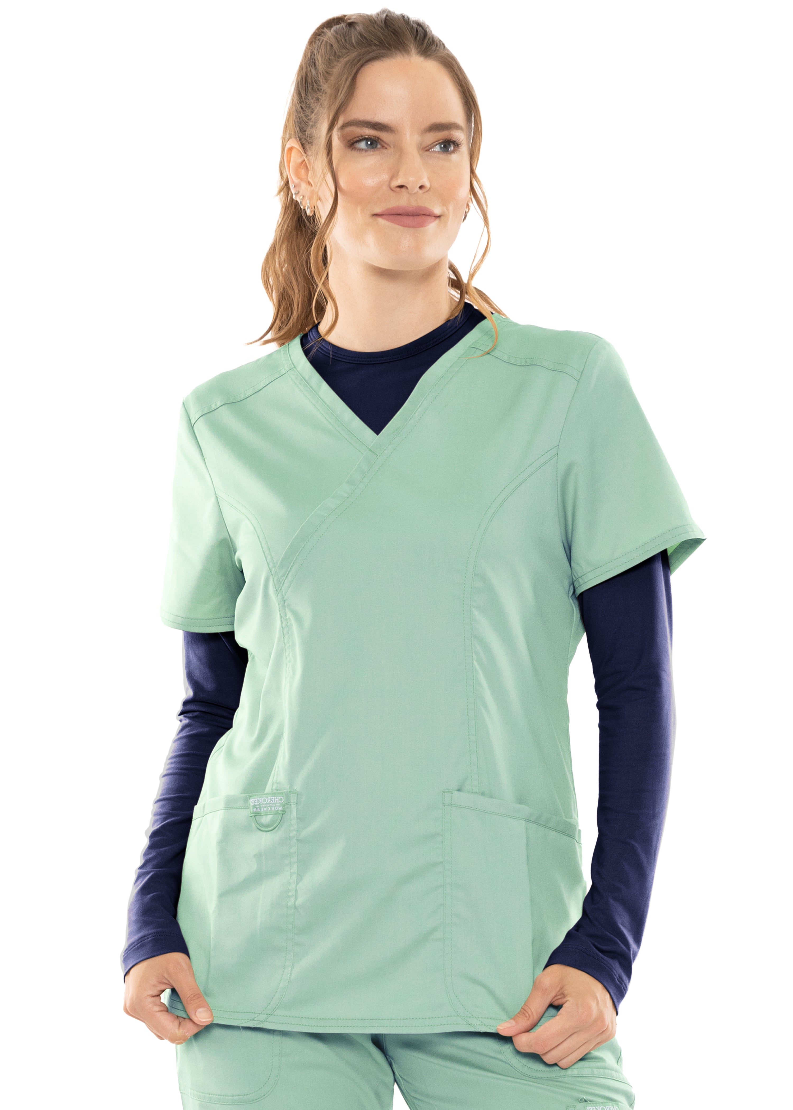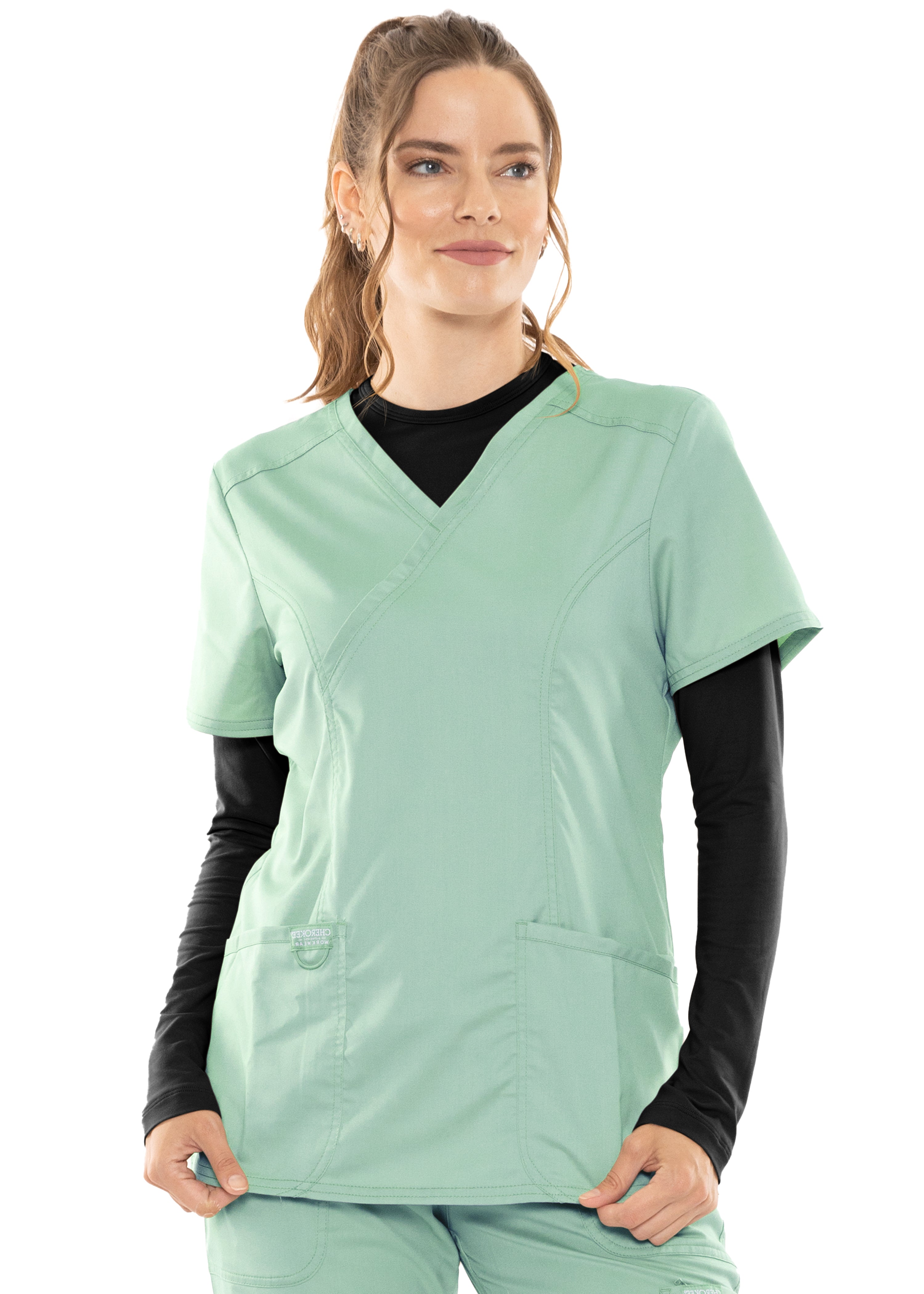 This essential piece is perfect for layering under scrubs or wearing on its own. The crew neck and long sleeves provide a classic look, while the lightweight fabric keeps you comfortable through your busiest days.